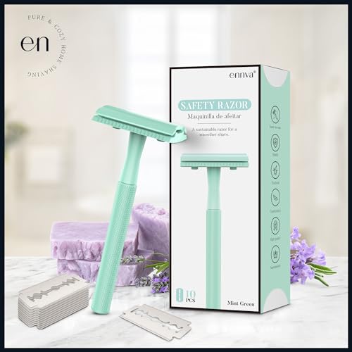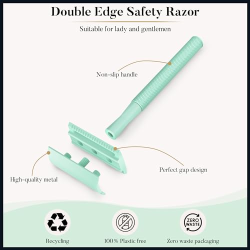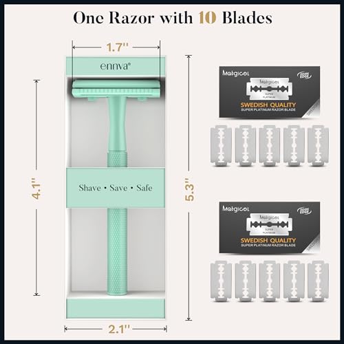 ENNVA Double Edge Safety Razor, Single Blade Razor with 10 Blades, One Blade Razor for Women, Razors for Men One Blade, Reusable Razor Women, Metal Safety Razor Kit, Free of Plastic – Mint Green