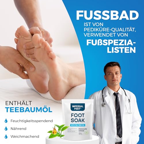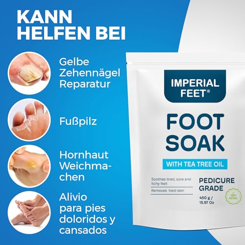 Imperial Feet Tea Tree Oil Foot Soak, the preferred choice for pedicure salons since 2001, is the definitive remedy for addressing foot issues like athlete’s foot and toenail repair. This pedicure-grade foot bath marries the soothing effects of bath salts with the potency of tea tree oil, creating a powerful solution that nurtures both foot health and relaxation. Known for its effectiveness in foot therapy, this foot care kit is complemented with pedicure tools to alleviate hard skin and fight infections. Our foot soak salts are engineered for extra strength efficacy, ensuring your feet emerge from the foot soaker feeling revitalized and well. Adopt a comprehensive approach to foot health with our ethically crafted foot bath soak, boasting a cruelty-free, vegan-friendly, and gluten-free formula. The blend of ingredients works harmoniously to detoxify, treat, and lavish your feet, enhancing your overall well-being and transforming your personal space into a spa-like retreat.