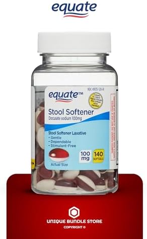 Get safe and effective relief with Equate Stool Softener Laxative Softgels. This bottle comes with 140 softgels, each one containing 100 milligrams of Docusate Sodium. This gentle, dependable formula can be used for occasional constipation and generally produces a bowel movement within 12 to 72 hours. This convenient bottle contains 140 softgels and can be taken by adults and children 2 years and over. Get back to feeling like your normal self with the help of Equate Stool Softener Laxative.