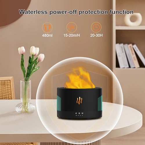 Essential Oil Diffuser Flame Effect, 450ml Air Diffuser Humidifier, Ultrasonic Aromatherapy Oil Humidifier, Suitable for Bedroom, Home, No Water Auto Shut Off, Diffusers for Essential Oils Large Room