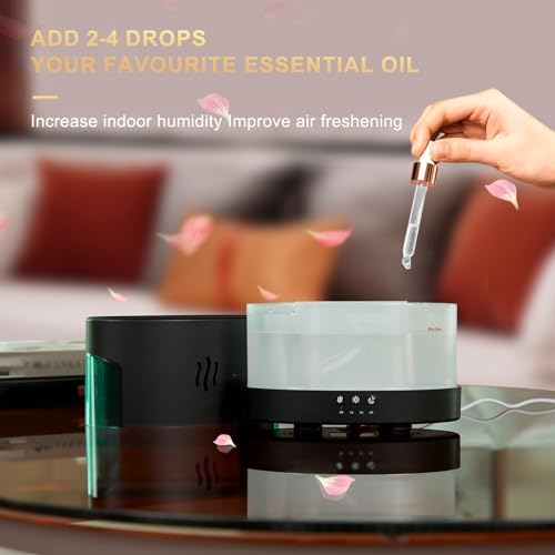TIMED SHUTDOWN: flame humidifier intelligently designed for efficiency built-in timer shutdown function optimizes energy consumption, ensuring worry-free operation. Boasting extended mist output, this volcano humidifier effortlessly refreshes your space for prolonged periods.