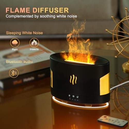 CREATING AMBIENCE: The flame effect of this essential oil diffuser adds a touch of sophistication to any environment and offers customizable scene settings for bedrooms, living rooms, and yoga studios, and is topped with an RGBW colorful flame fog light that further enhances the ambiance with its adjustable brightness and fog volume.