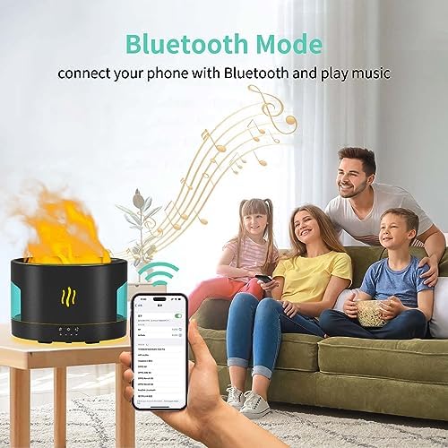 Essential Oil Diffuser for Large Room, 450ml Air Humidifier with White Noise Machine, Bluetooth Speaker, Remote Control Flame Diffusers for Home, Bedroom or Gifts (Black)