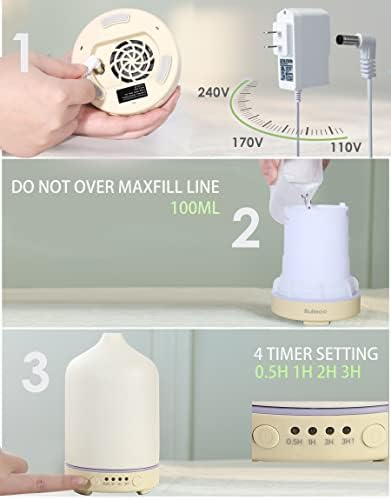【4 timed】Ceramic aromatherapy diffuser,high efficiency and energy saving,set 4 timers for 0.5h,1h,2h,3h and continuous,and automatically turn off 5 seconds after water is used up.A variety of light colors make your home full of romantic and warm atmosphere.If you have any questions,Please contact us.We will do our best to make every customer 100% satisfied and value for money.