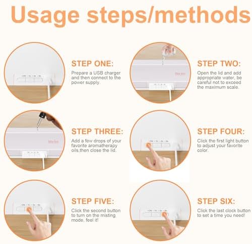 【Versatile humidifiers for bedroom】Flame Diffuser humidifier,Press the second button to select the flame mode (7 color change/stay single color/cold mist), press the left button to turn on/off the diffuser/turn off the light, press the right button to set the working time. (1 hour, 3 hours, 5 hours).