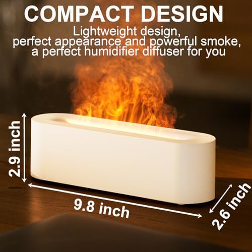 【Flame Diffuser for Home】Upgraded diffuser/humidifier size of 9.9*2.75*2.95/Inch,,Built-in 7 color-changing LED lights, light and fog in one, create a realistic flame effect, add a warm, relaxing, soothing, atmosphere to your bedroom, office, spa, etc.