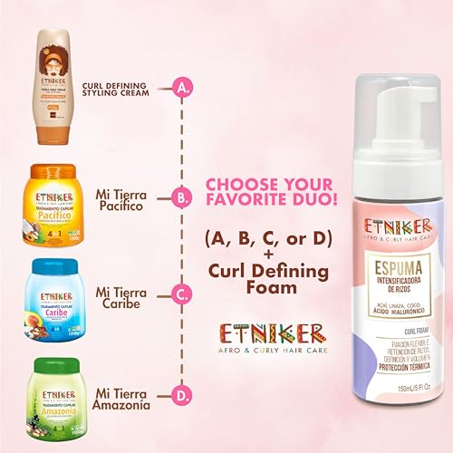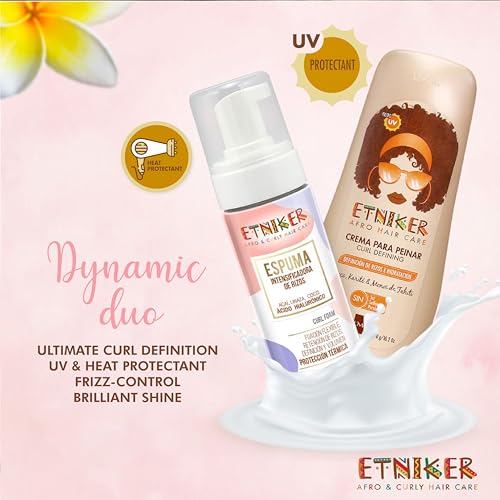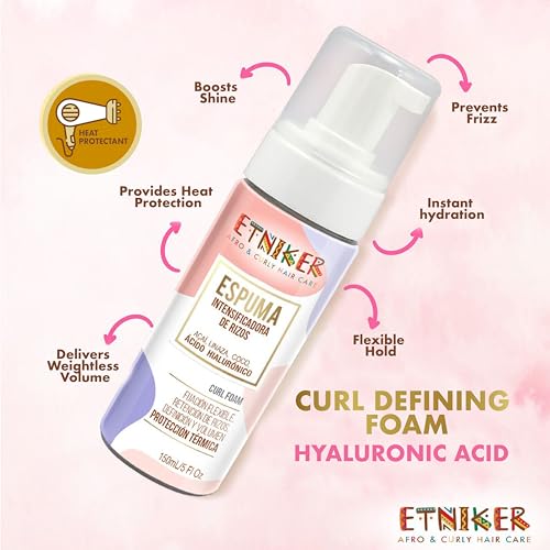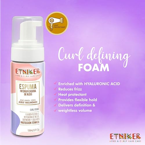 Etniker Curl Foam. Styling Foam for Curly & Wavy Hair. Frizz Control hair Mousse with Acai, flaxseed, coconut & Hyaluronic Acid. Hair Styling Products no Alcohols, Parabens or Silicone. 5 fl. oz.