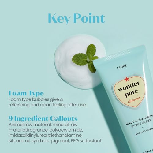 ETUDE Wonder Pore Cleanser 150g (5 fl. Oz) 23AD | Kbeauty | Deep Foam Cleanser for Sensitive Skin to Balance Sebum Level, Clean Dirt and Impurities in Pores | Ultra Mint Vinegar for a Fresh Finish…