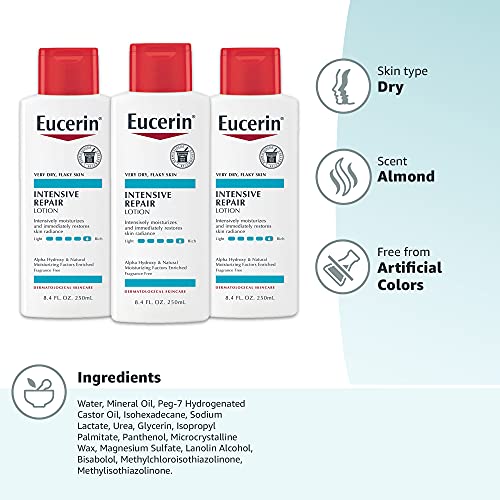 Eucerin Intensive Repair Body Lotion, Lotion for Very Dry Skin, 8.4 Fl Oz (Pack of 3)