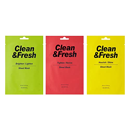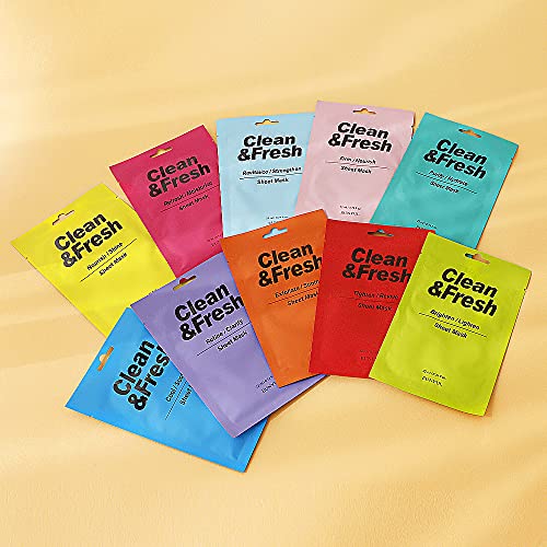 EUNYUL [PACK OF 10] Clean & Fresh Sheet Mask 22 ml / 0.74 fl.oz. 10 types Korean Sheet Mask Bundle Pack For All Skin Type Face Mask Pack