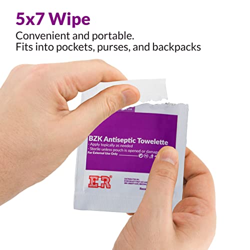 Ever Ready First Aid Benzalkonium BZK Wipes, 5”x7”, 100 Count