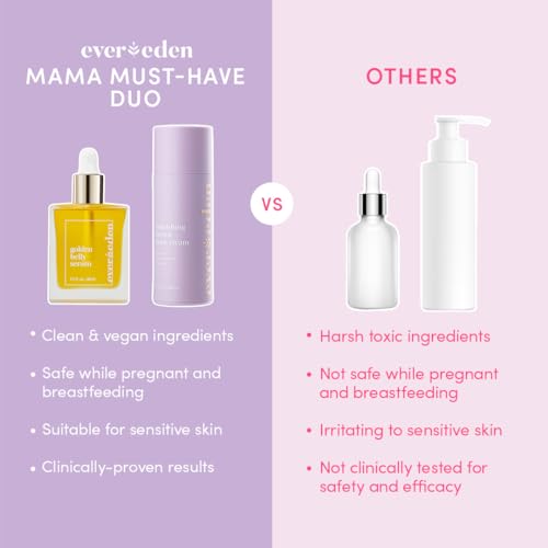 Evereden Mama Must-Have DUO – Golden Belly Stretch Mark Oil & Nourishing Stretch Mark Cream – Dermatologist-Developed Clean & Vegan Maternity Skin Care for Stretch Mark Reduction & Skin Hydration