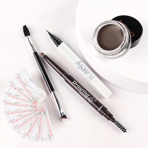 ❤【Eyebrow Pencil Eyeliner Stencil Kit】Included Eyebrow Pencil, Liquid Eyeliner, Eyebrow Pomade, 10 Eyebrow Stencils and Dual-ended Eyebrow Brush.Instantly outlines, defines & fills in your brows no matter how much eyebrow hair you have,3 minute to create flawless, symmetrical brow!