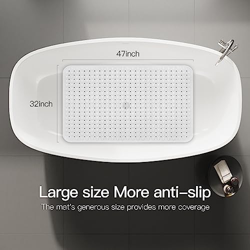 Extra Large 47 x 32 Inch Shower Mat Non Slip, Shower and Bath Mat with Drain Holes and Suction Cups, Extra Wide Bath Tub Mat Non Slip, Bathroom Accessories, Clear
