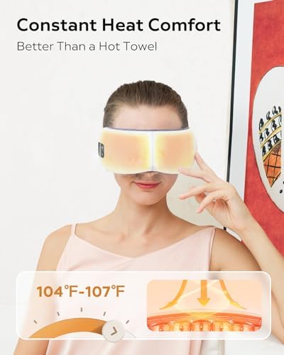 [Relax Your Eyes] Our eye heating massager features a built-in heating pad that offers a comfortable temperature ranging from 104 to 107 degrees Fahrenheit (40℃-42℃). This helps soothe the muscles around your eyes and promotes blood circulation. With vibration and air compression massage, your eye area will feel more relaxed, providing a comfortable massage experience that reduces eye fatigue.