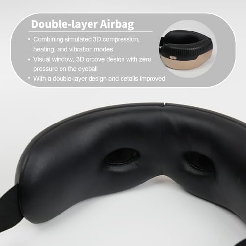 Upgraded Double-layer Airbag: Kuidada eye massager mask adopts an innovative double-layer massage cushion structure and ergonomically designed technical improvements, minimize squeezing on the temples, bridge of the nose, and other places. Maximize comfort, fit, and stability. The soft and breathable leather inner lining allows for easy wipe-cleaning with just a piece of cloth.