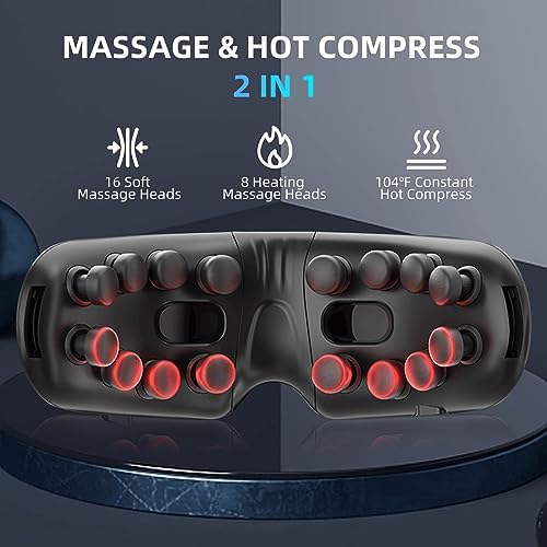 ULTIMATE COMFORT WITH HOT COMPRESS: Experience the ultimate comfort with our heated eye mask equipped with 8 heated massage heads. These massage heads target the acupoints around eye bags, providing a constant hot compress at a soothing temperature of 104-107℉. This innovative feature helps relax your eye muscles, alleviating tension and promoting better blood circulation.