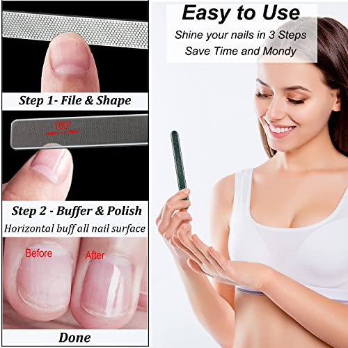 High Quality File and Buffer Set – Includes 1pc 220 grits crystal metal nail file and 1pc nano glass nail buffer. Both of 2 exquisite manicure tools are sturdy with long-lasting file surface.