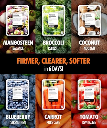 FARMSKIN Superfood Salad Sheet Mask Set of 6 | Face Mask Sheets including MangoSteen, Broccoli, Carrot, Coconut, Blueberry & Tomato | Refreshing, Nourishing & Cruelty-Free Face Mask Skincare Set