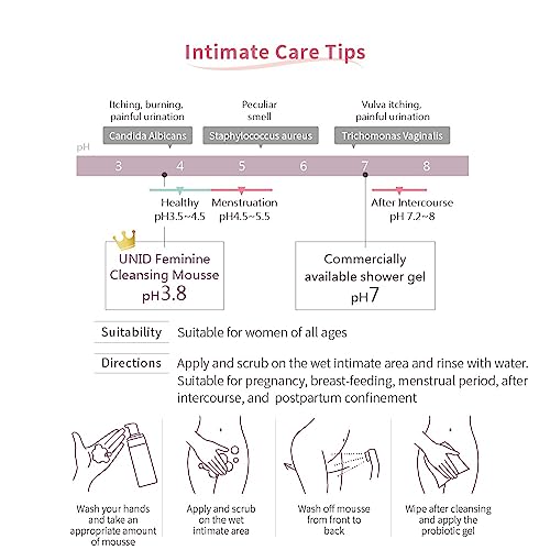 Directions: Apply and scrub on the wet intimate area, wash off the mousse from front to back, and wipe after cleansing (apply UNID Feminine Probiotic Gel).
