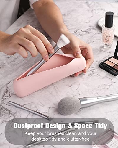 FERYES Makeup Brush Holder, Magnetic Closure Silicon Portable Cosmetic Face Brushes Holder, Soft and Sleek Makeup Tools Organizer for Travel- Pink