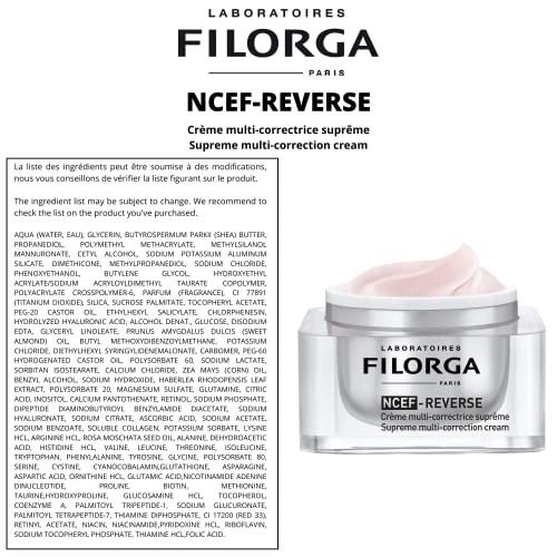 Filorga NCEF-Reverse Multi-Correction Skin Moisturizer Cream, Anti Aging Formula of Hyaluronic Acid, Collagen, and Vitamin to Reduce Wrinkles and Restore Skin Elasticity of the Eye and Face, 1.69 oz