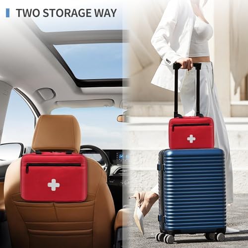 【MULTI-POCKET STORAGE】The first aid kit adding two additional pockets on top of the existing two internal pockets provides extra space for your medical essentials.The transparent pocket design allows you to quickly identify items.