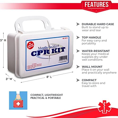 COMPACT & LIGHTWEIGHT – The hard case CPR Kit is perfectly sized to easily fit into a trauma first responder medical bag, backpack, vehicle compartment or desk drawer. Kit dimensions: 8.3”x5”x”3.1”.