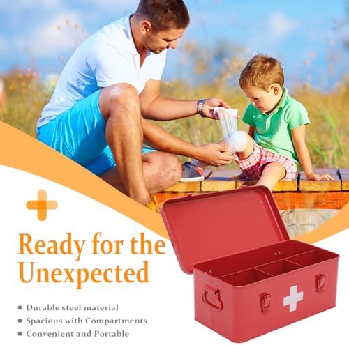 Be the first to review “First Aid Kit Box, Red Medicine Box with White Cross, First Aid Supplies Organizer, Pills Storage Box Empty with Safety Lock & Portable Handles, Metal Storage Bin for Home Emergency Tool Set”