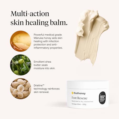 FIRST HONEY Manuka Foot Cream for Dry, Cracked Skin, Fast Relief for Feet, Natural & No Fillers, Cracked Heel Treatment, 3.5oz