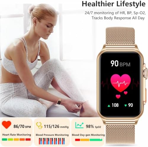 FITVII Health Fitness Tracker, 24/7 Blood Pressure Heart Rate Monitor, Smart Watch (Answer/Make Calls) with Blood Oxygen Sleep Tracking Watch, Waterproof Step Calorie Activity Tracker for Women Men