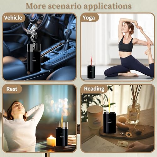 💧【Rechargeable & Automatic Protection】 The unique cable-free aroma diffuser can run for up to five hours on a full charge and can be easily recharged using the included USB cable. You can enjoy the scent anywhere without being restricted by a cord. Thanks to the built-in protection chip, it automatically shuts off once there is no water.
