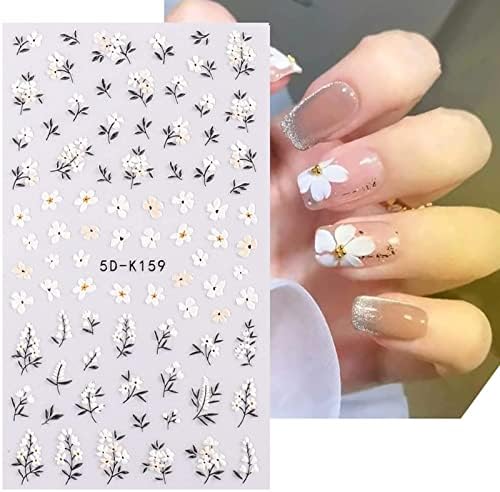 Flower Nail Art Stickers 5D Embossed Nail Decals Spring Daisy Nail Art Design Self Adhesive Nail Supplies White Yellow Colorful Flower Nail Stickers for Women Nail Decoration