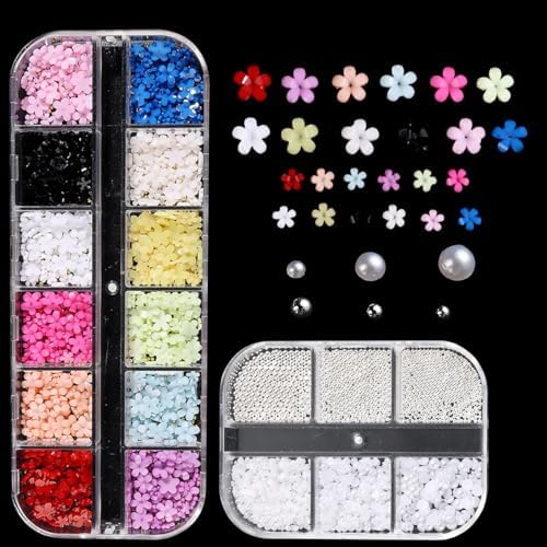 【Package】 You will get 2 boxes nail charms. 1 box is 3d colorful acrylic flowers for nail art with color of white,black,pink,red,blue,green,purple,yellow,nude. 1 box is mixed silver caviar beads and flatback pearl beads for nail art.
