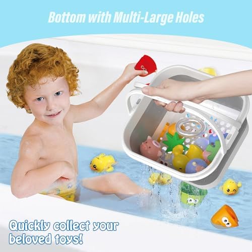 【Easy to Use】- Scoop up bath toys with the large comfortable handle after bathtime, place bin in base, and leave until next bath time.