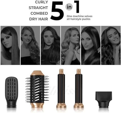 Foldable Hair Blow Dryer Brush 5 in 1,Hot Air Brush Blowout Styling Tools,Auto Rotating Wavy with Comb Set,Round Straightener with Negative Ionic for Women