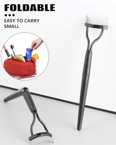 Folding Eyelash Comb Eyelash Brush 2 Pcs Eyelash Separator Tool Metal Steel Brow Brush for Women Comb Makeup Grooming Cosmetic Brushes Tool Accessories Black US155