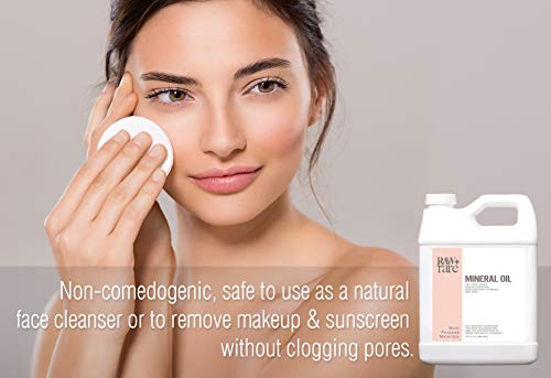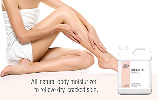 The 128 oz Food Grade Mineral Oil is packaged in a sleek plastic container with a heat sealed foil and resealable cap for leak-proof closure, along with an ergonomic handle for easy carrying convenience.