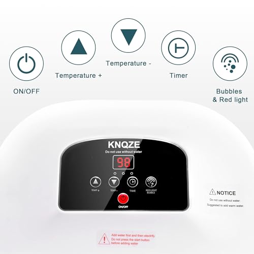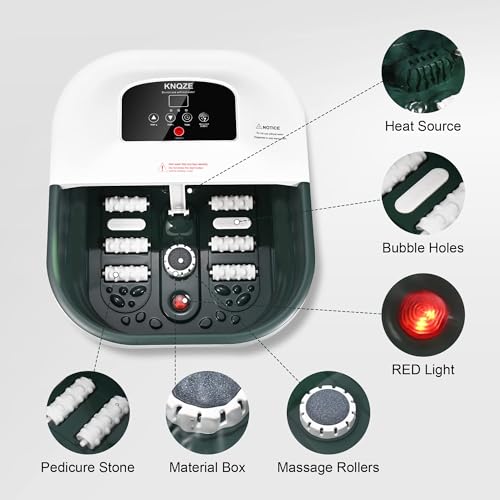 【Professional Home Foot Spa】KNQZE multi-functional foot spa bath integrates heating, massage, oxygen bubbles, vibration and red light functions to relax your feet by gently massaging and soothing your tired, overworked feet. The diameter is 15.5 inches and even fits 12 inches feet which is suitable for whole family.