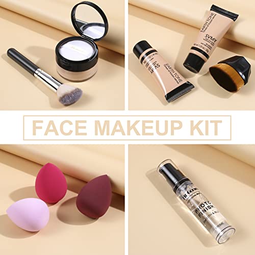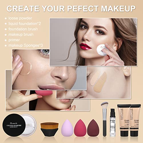 Foundation Liquid Full Coverage Matte Oil Control Concealer with Face Primer & Makeup Brush & Makeup Sponges