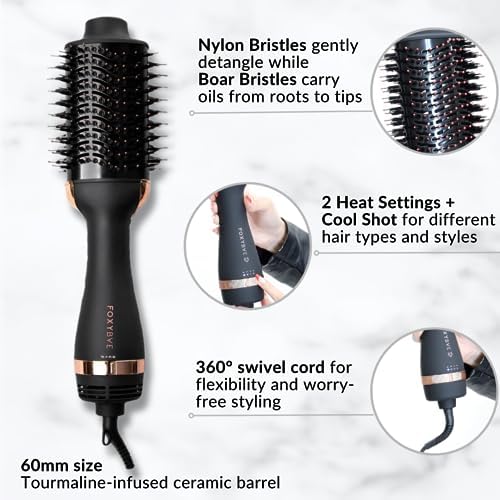 [All-In-One 60mm Hot Air Brush] Get salon results from home with Foxybae Blowout Dryer Brush. This all-in-1 dryer brush detangles, dries, & styles hair all in one easy-to-use tool! Get the salon look without the price tag – stay frizz-free & FOXY!