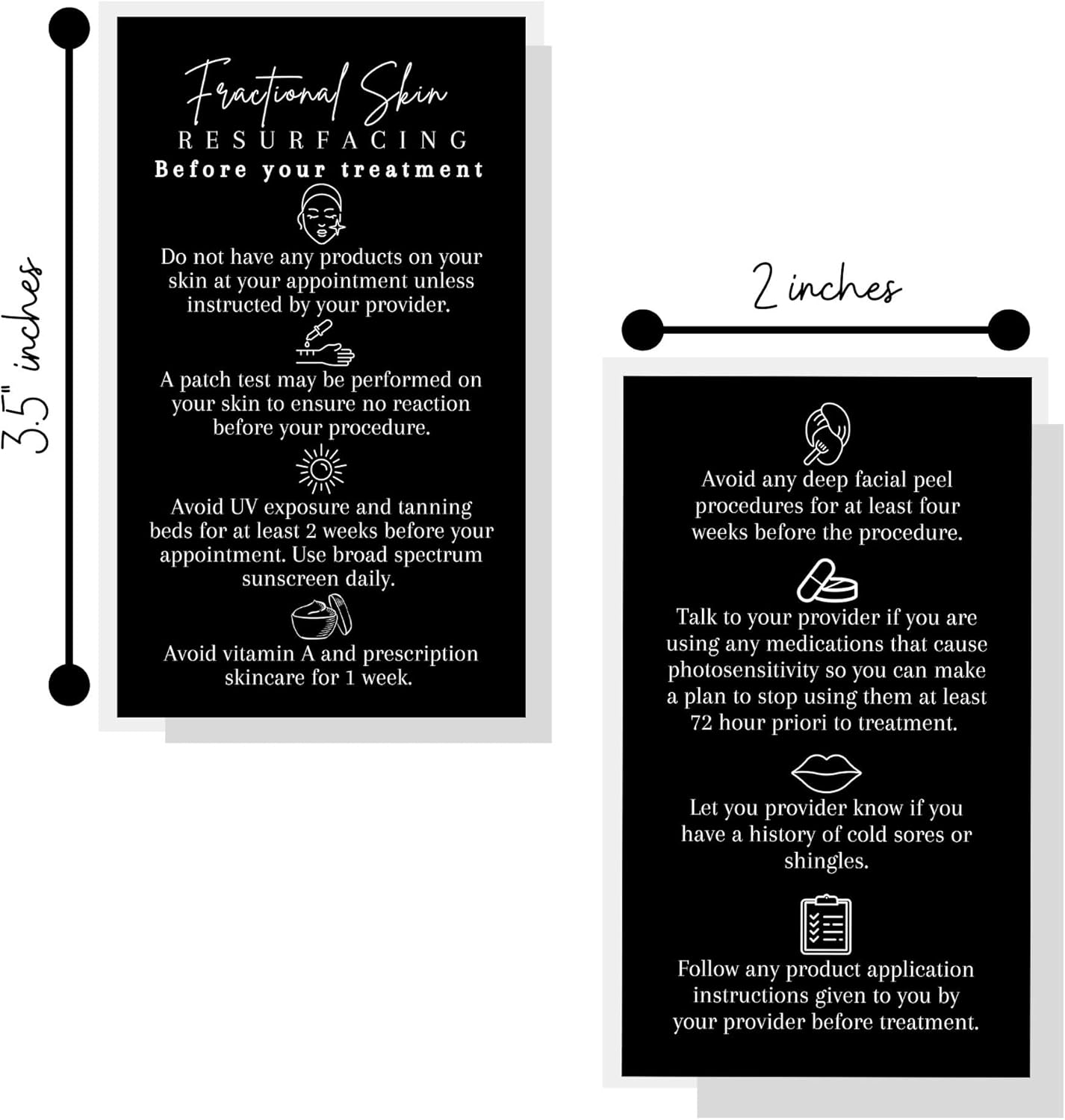 Fractional Skin Resurfacing Pre Treatment Card | 50 Pack | 2×3.5” inches Business Card | Laser Therapy Supplies | Black & White Design