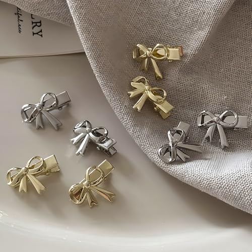 FRDTLUTHW 0.97Inch Y2K Bow Metal Hair Clips,8PCS Gold and Silver Cute Alligator Hair Barrettes,Non Slip Small Duckbill Hair Accessories for Women(Silver,Gold)