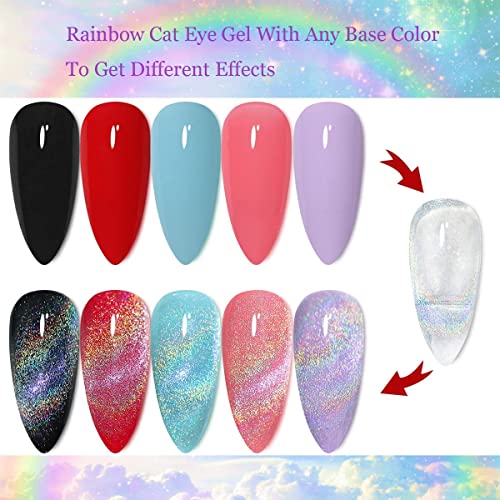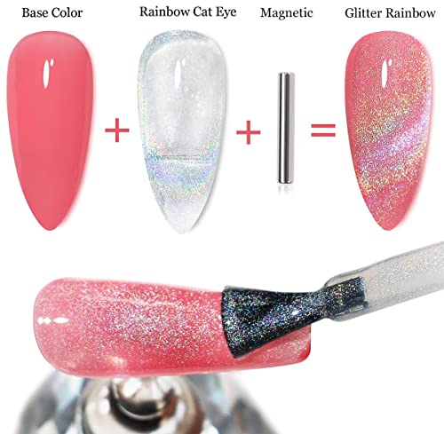 Gel Polish 15ml/0.5fl oz Holographic 9D Cat Eye Shiny Glitter Soak Off Nail Polish with Magnetic Stick for Nail Salon
