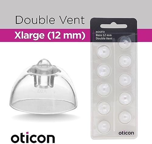 Genuine Oticon Hearing Aid Domes MiniFit Double Vent Bass 12mm (0.47 inches – XLarge), Oticon Branded OEM Denmark Replacements, Authentic Accessories for Optimal Performance -1 Pack/10 Domes Total