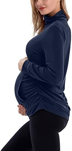 GINKANA Maternity Women’s Long Sleeve Shirt Half Zipper Lapel Lightweight Casual Maternity Pullover with Pockets
