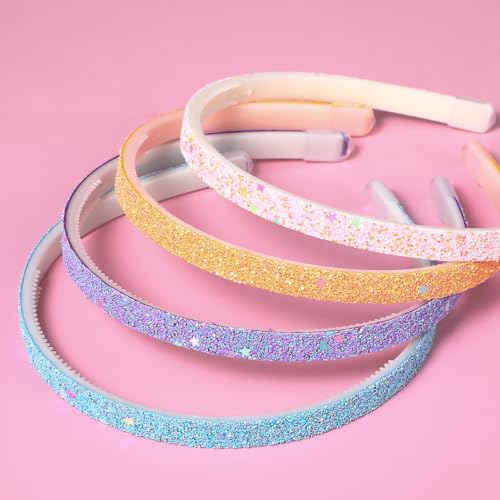 Glitter Headband, 4pcs Plastic Sparkly Cute Non Slip Chunky Hairbands, Thick Bling Confetti Rainbow Hair Bands with Teeth, Little Girls Colorful Hair Accessories
