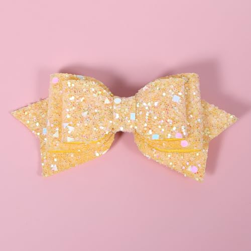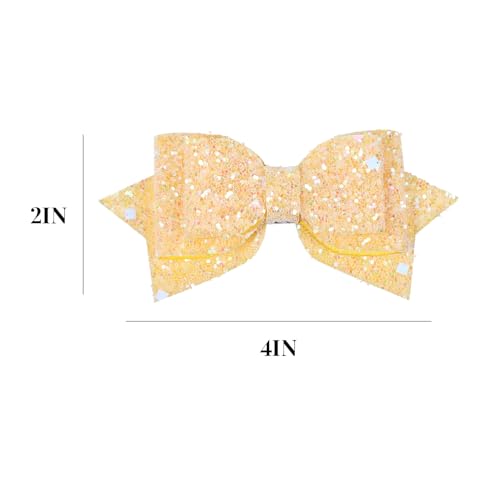Glitter Sparkly Yellow Hair Bows 4″ Alligator Clips Hair Barrettes for Teens Toddler Girls Hawaiian Luau Beach Tropical Vacation Party Favor Decorations Accessory Gift