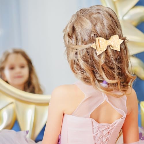 4 Inch Glitter Hair Bows,Cute Boutique Sparkly Glittery Sequins Cheer Bowknot Hair Barrettes Alligator Hairpins,Small Handmade Multi Colored Sparkling PU Leather Hair Decoration Accessories Outfits Stuff for Baby Teens Toddlers little Girls Kids Women in Pairs
