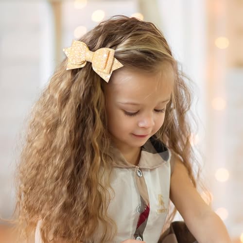 Prime Quality-Made Glitter Hair Bow Clips– Cute glittery sequins hair bow barrettes comes in pairs are quality-made & absolutely stunning! Glitter stays on PU leather! Doesn’t rub off too! Hair bows were well attached alligator hair clips by hot glued steady,all clips won’t fell off whatever your girls’ hair is thick, thin,curly,wavy,fine or straight,short,long hair.